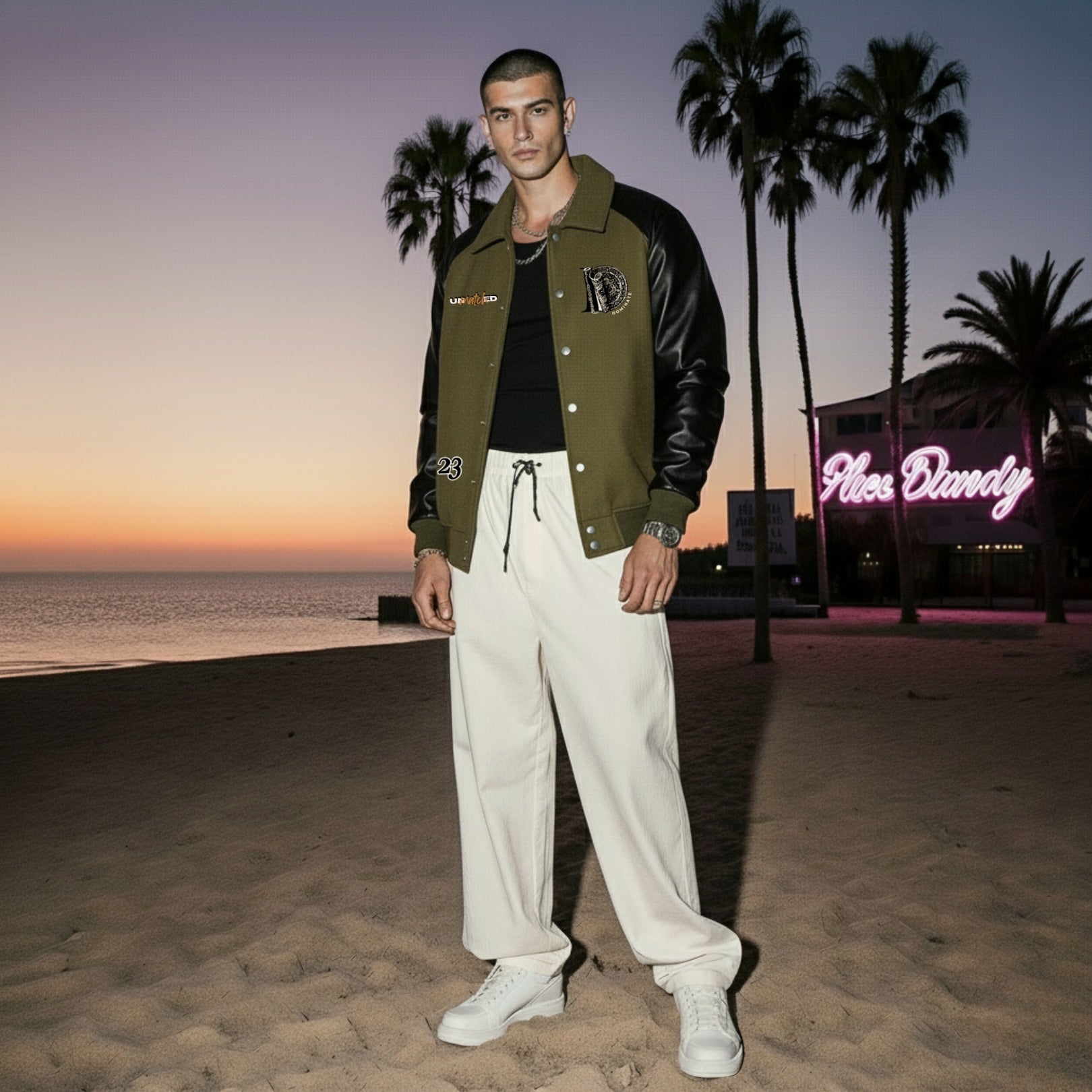 Classic sport heritage redefined. The Green Varsity Jacket captures the essence of dominance — bold, refined, and effortlessly confident.