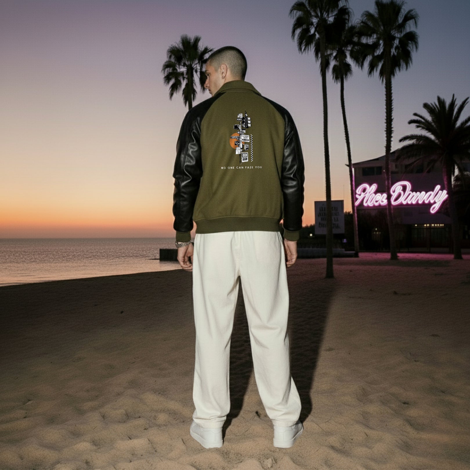 Classic sport heritage redefined. The Green Varsity Jacket captures the essence of dominance — bold, refined, and effortlessly confident.
