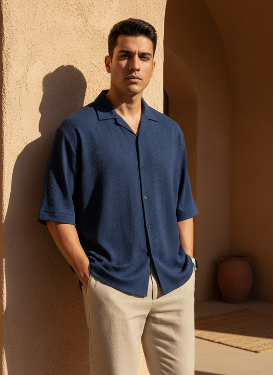 Refined. Relaxed. Unmistakably confident. The Azure Textured Cuban Collar Shirt is designed for men who...