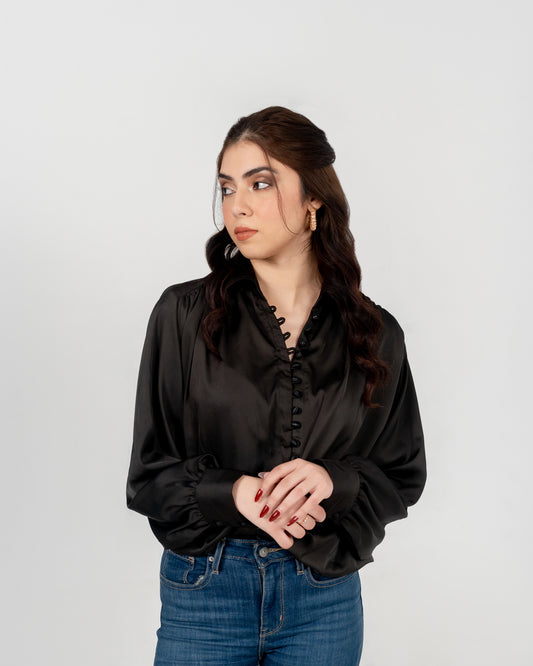Introducing our Luxe Noir Elegance Button-Down – a symphony of opulence, sophistication, and unabashed femininity....