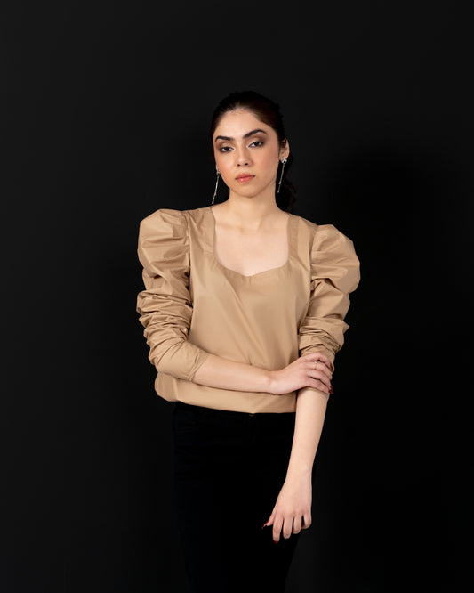 ntroducing our elegantly designed Beige Puffer Shoulder Top, a timeless addition to your spring wardrobe....