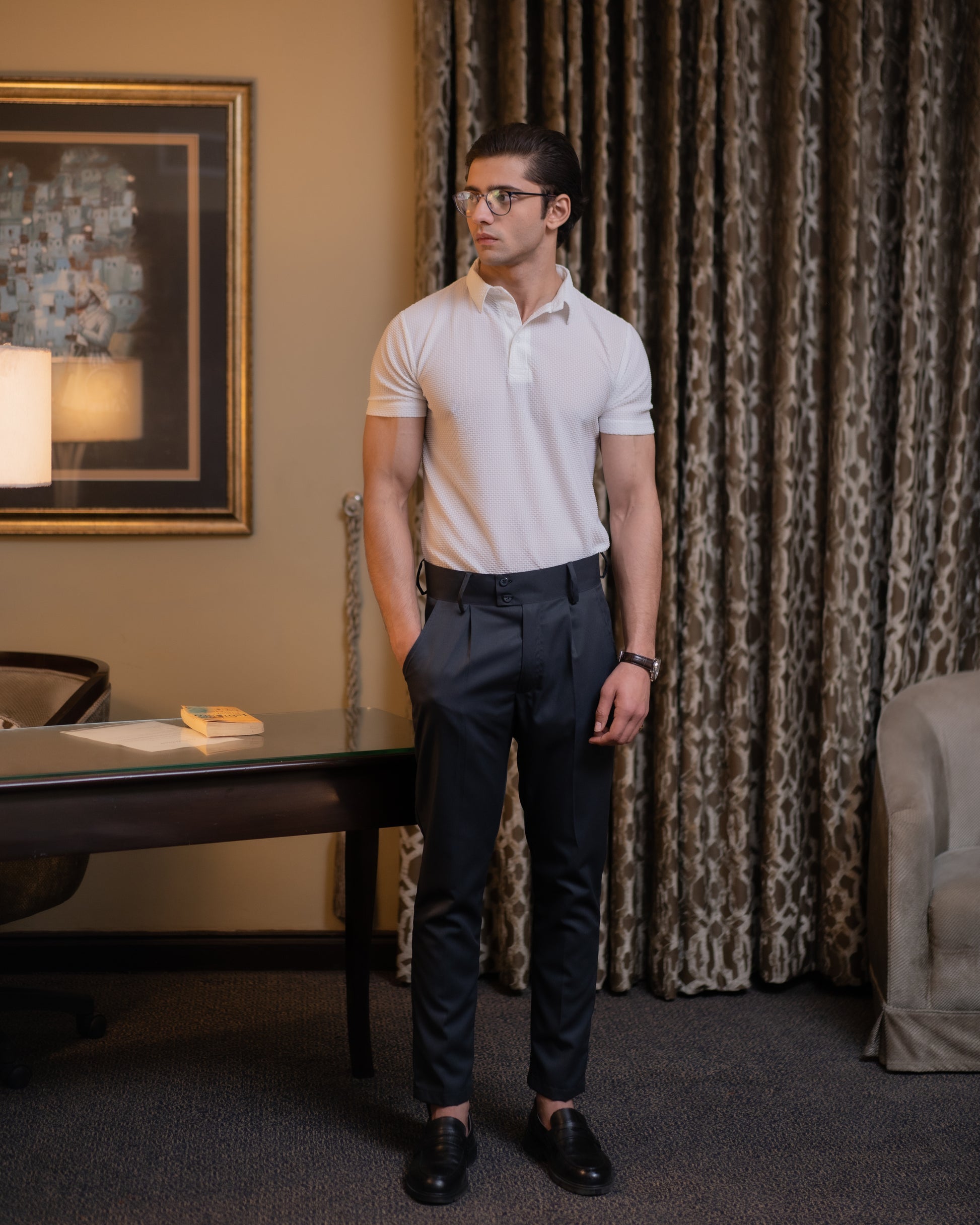 A masterclass in refined minimalism and understated luxury, the Casablanca Ensemble is designed for those who appreciate sophistication in its purest form. Featuring the Casablanca Polo and Grey Pleated Pants, this pairing is the epitome of elegance with a modern edge.