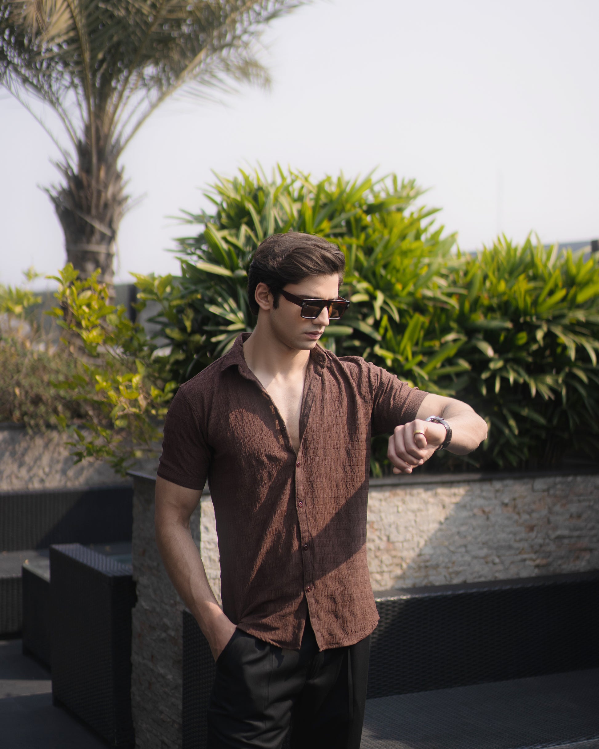 The Espresso Prestige Button-Down is a masterpiece of luxury fabric, offering a silky-smooth feel with a flawless drape. The deep espresso hue adds warmth and richness, making it a versatile staple that pairs seamlessly with tailored essentials.