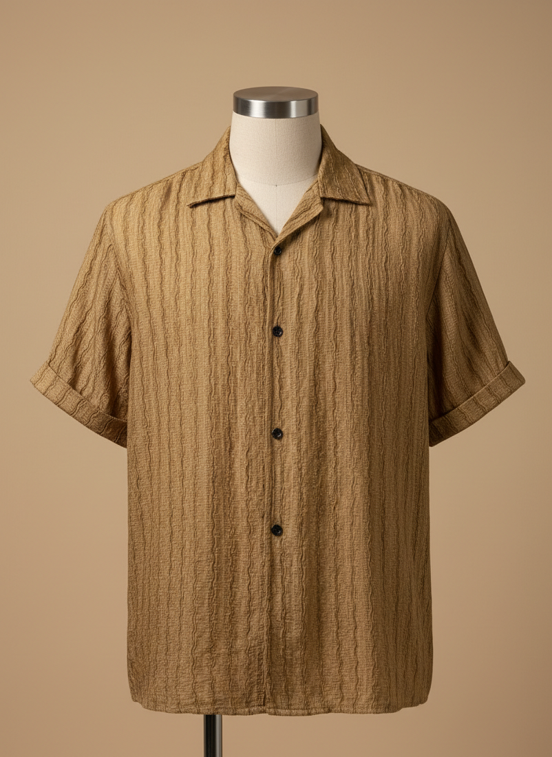 The open Cuban collar frames the neckline with relaxed elegance, while the fluid drape and clean button-down front keep it sharp. It’s breathable, lightweight, and tailored to fall perfectly — not cling, not boxy. Just right.