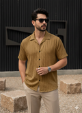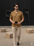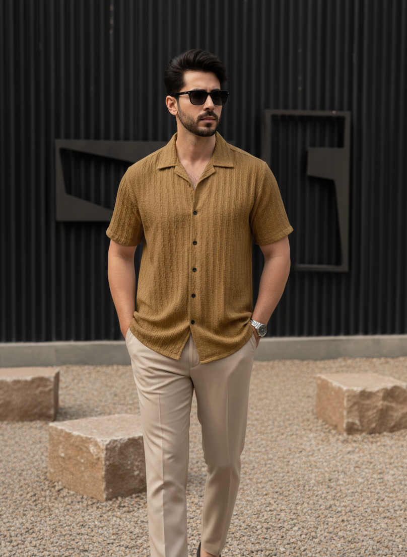 The Azure Textured Cuban Collar Shirt is designed for men who understand quiet luxury. Cut in a rich navy tone with subtle woven texture, this piece blends effortless summer ease with structured sophistication.
