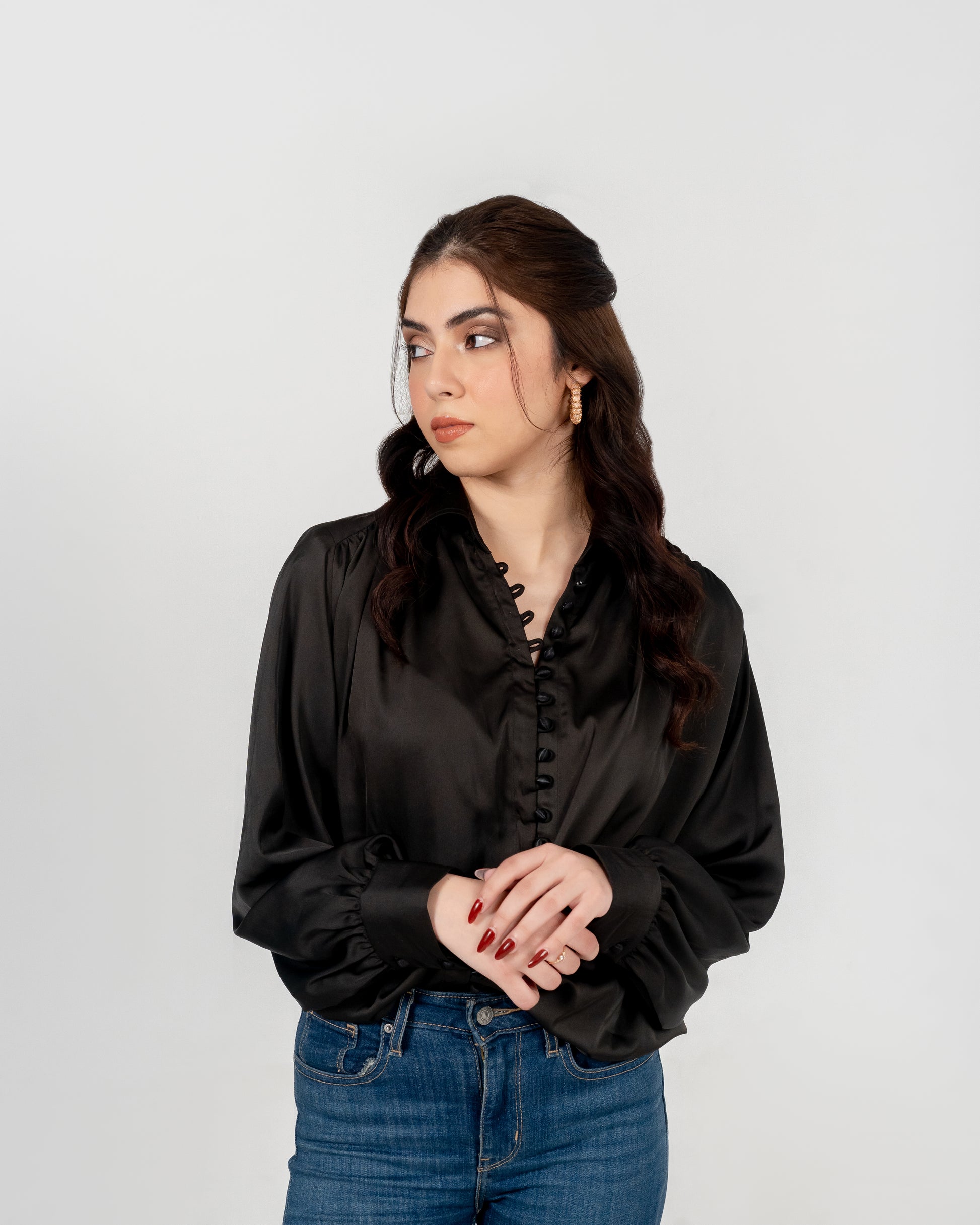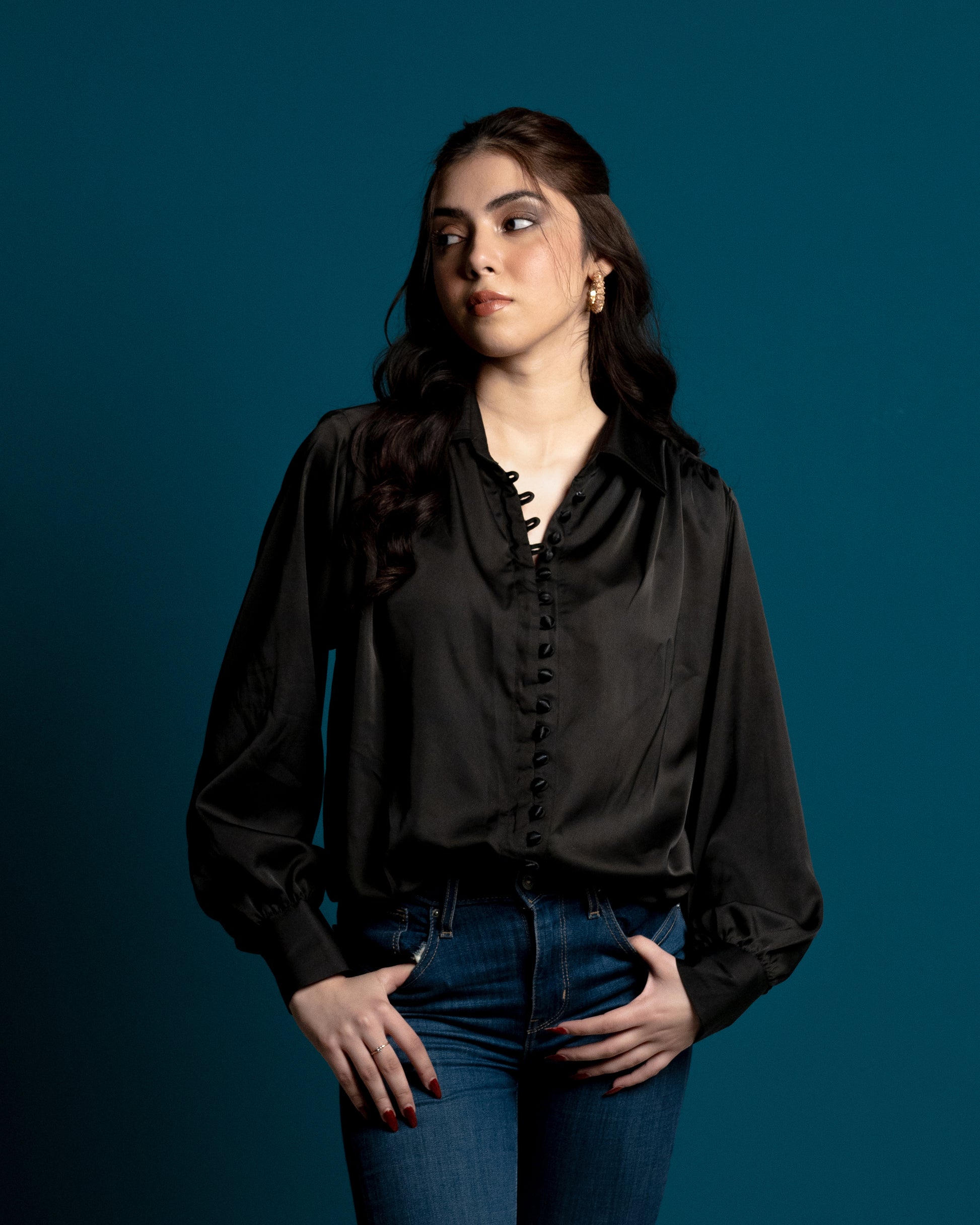 Introducing our Luxe Noir Elegance Button-Down โ a symphony of opulence, sophistication, and unabashed femininity.