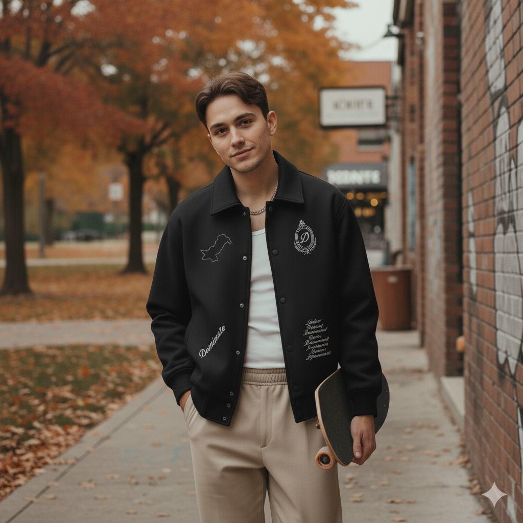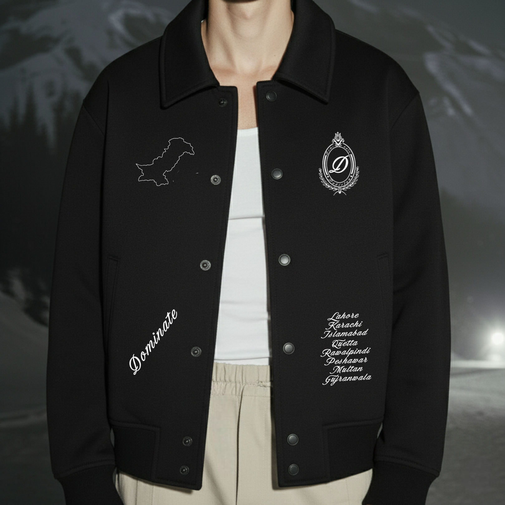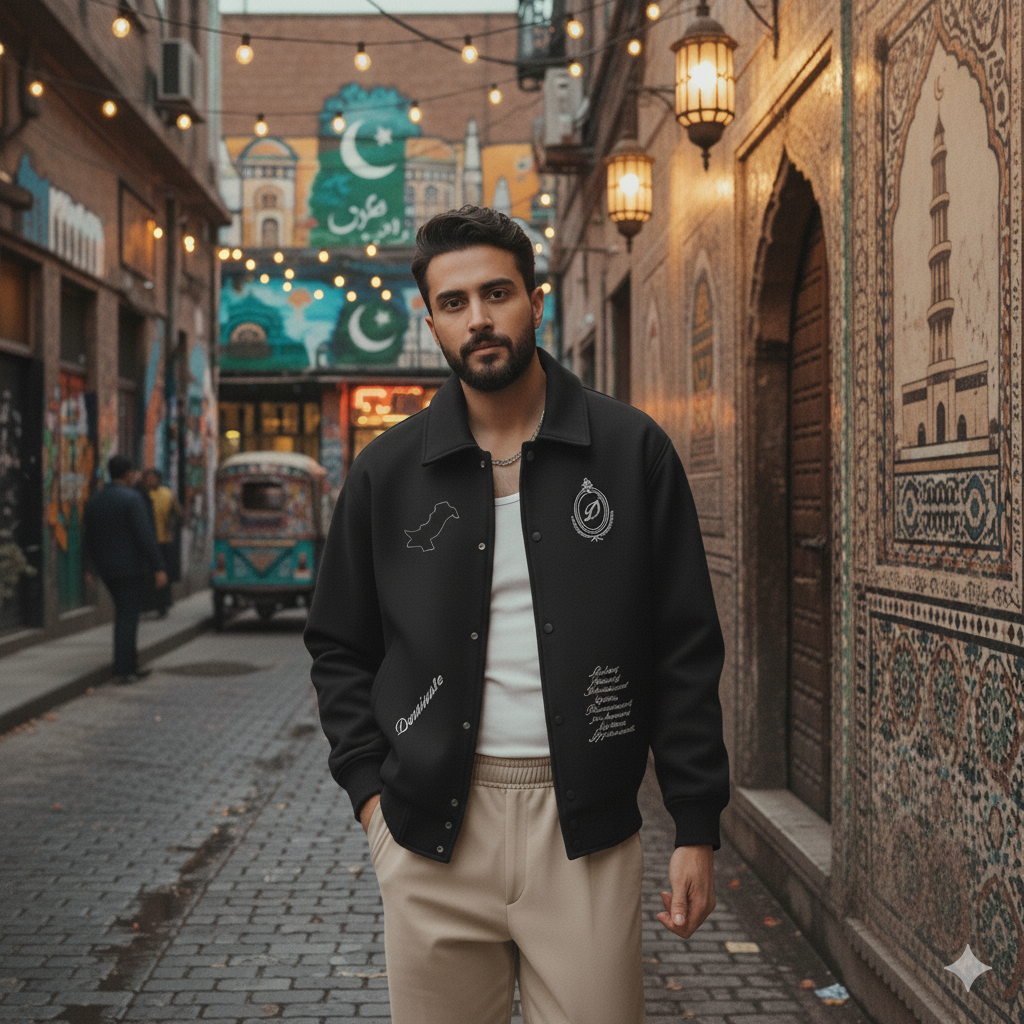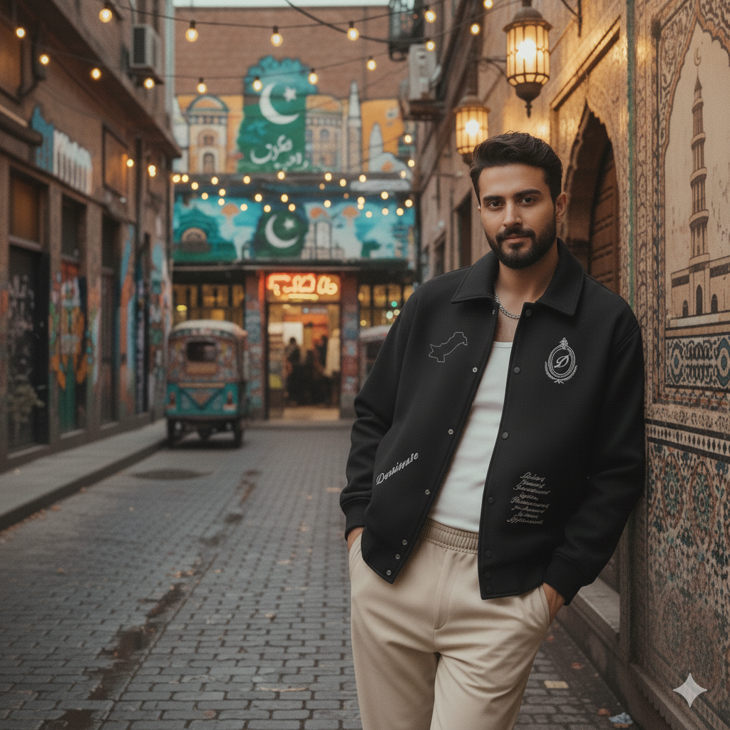 A tribute to heritage, reimagined through modern design. The Pakistan-Inspired Varsity Jacket celebrates strength, unity, and timeless style — built for those who carry their roots with pride.