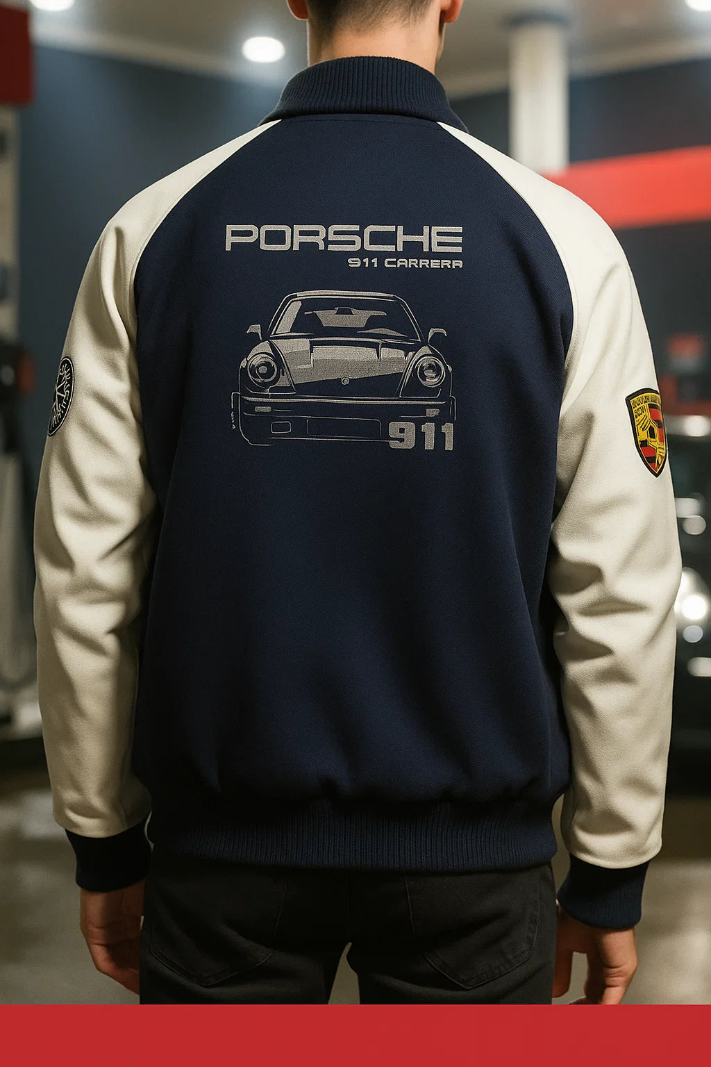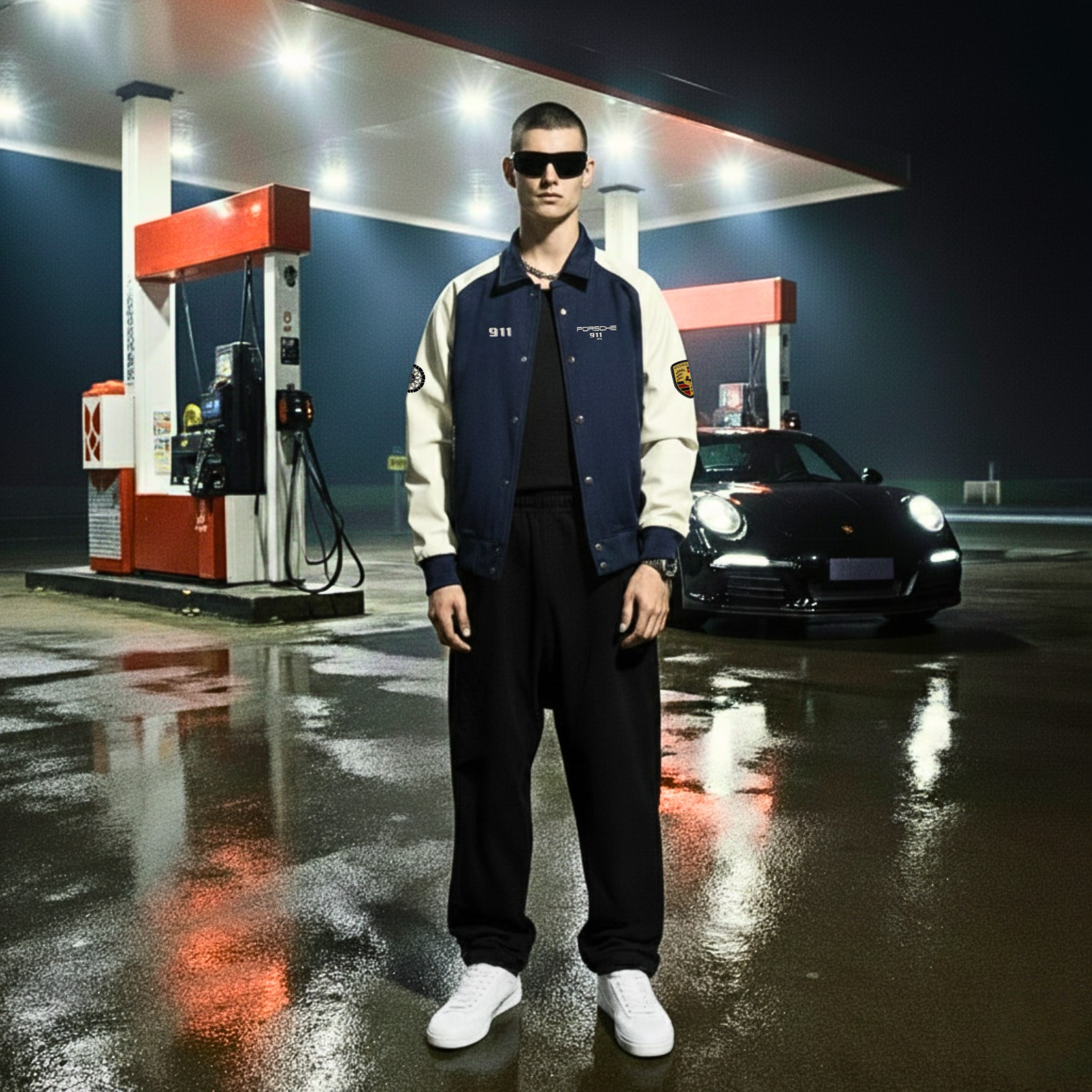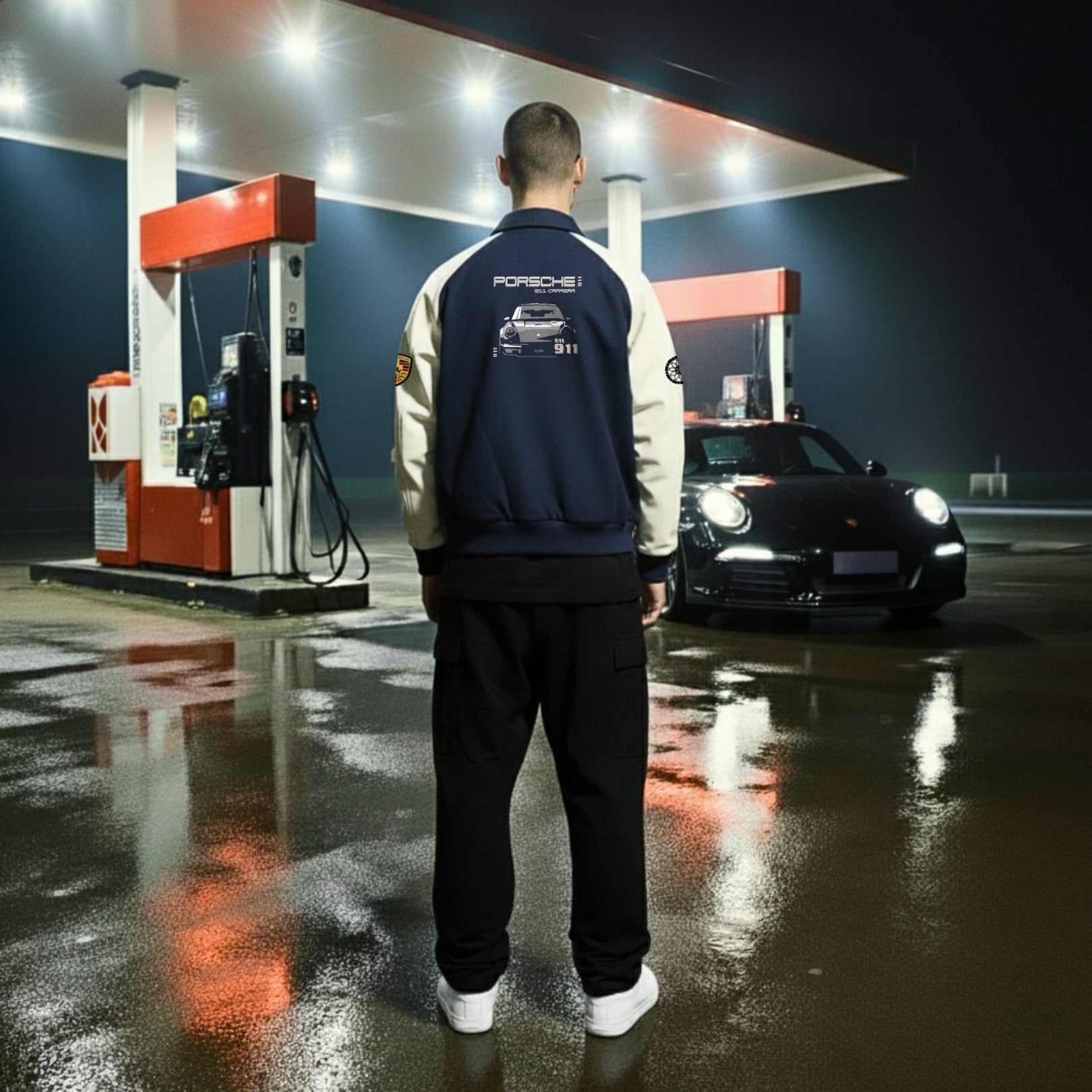 Precision meets heritage. Inspired by the timeless elegance of Porsche design, this varsity jacket redefines modern street luxury.